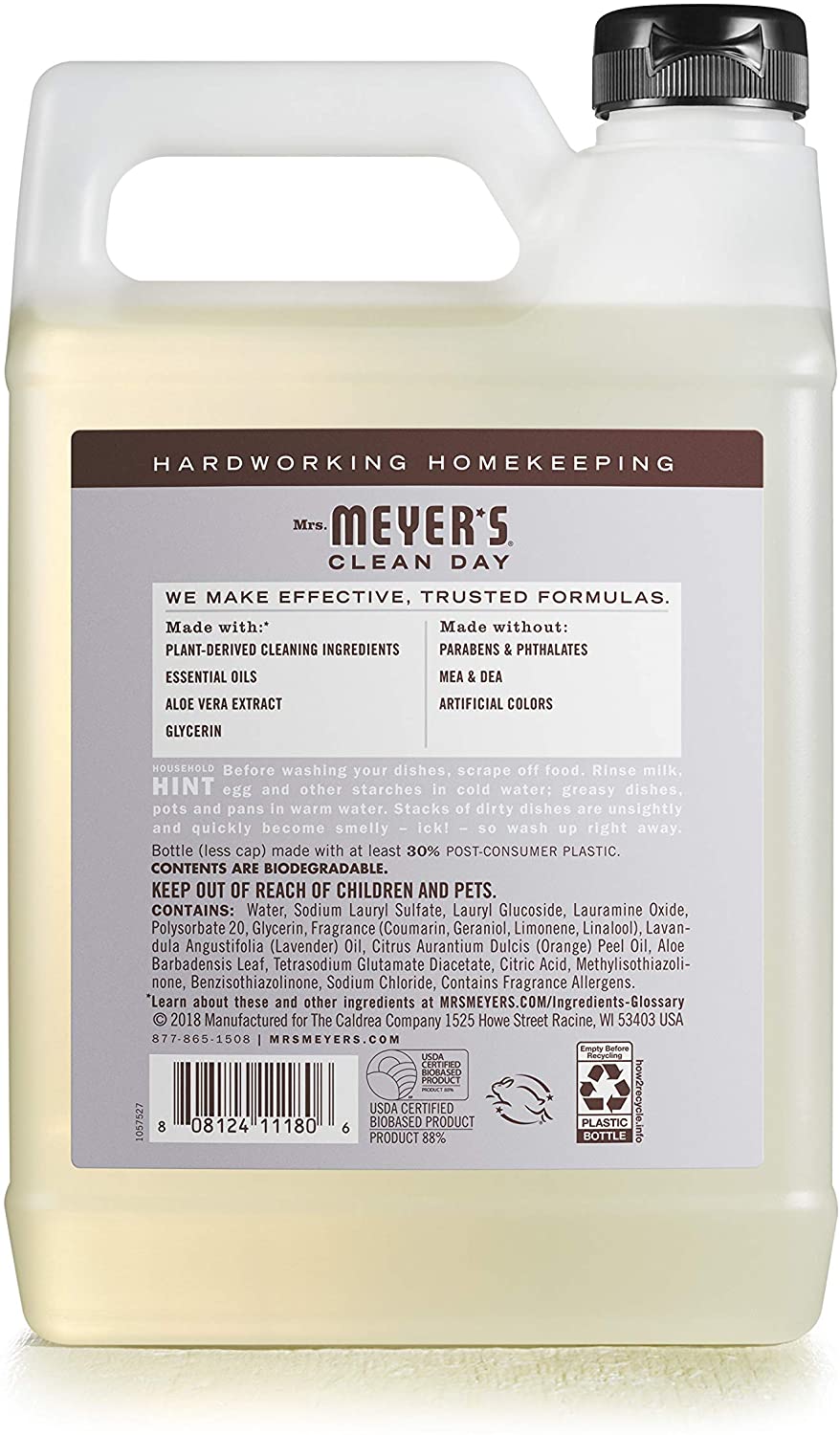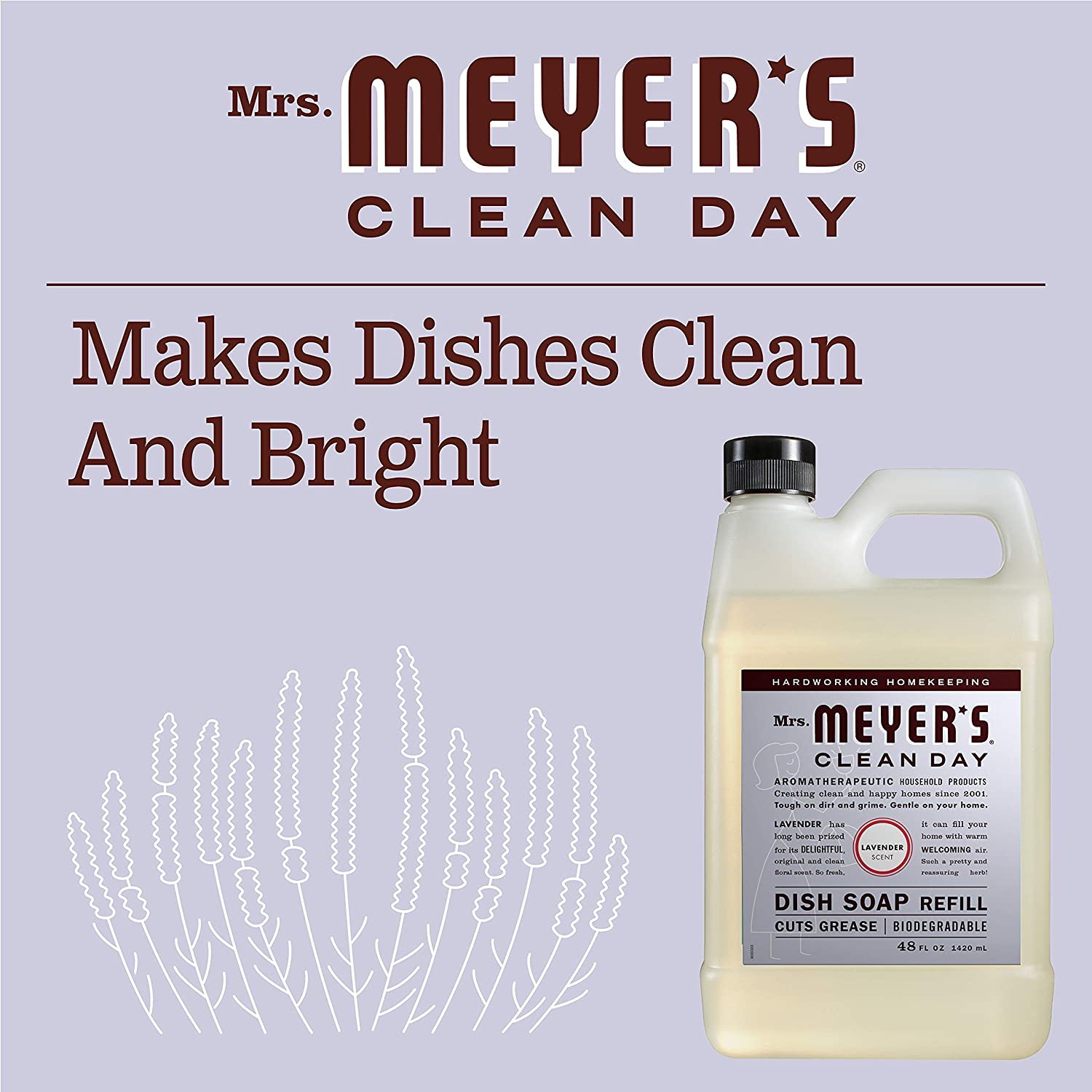 Mrs. Meyer's Clean Day liquid dish soaps are specifically made to make grease disappear, while also providing a special, singular scent for your entire home. The Lavender scented liquid dish soap has an original and clean floral scent. Such a pretty and reassuring herb! Our biodegradable dish soap cuts through grease yet is gentle enough for hand washing dishes, pots, and pans. The dishwashing liquid contains plant-derived cleaning ingredients that keep dishes clean and bright. Made without parabens, phthalates, animal derived ingredients, and always a cruelty free dish soap. Also available in other garden inspired scents and products such as body lotions, laundry detergents, candles, and so much more! Mrs. Meyer's - rooted in goodness.