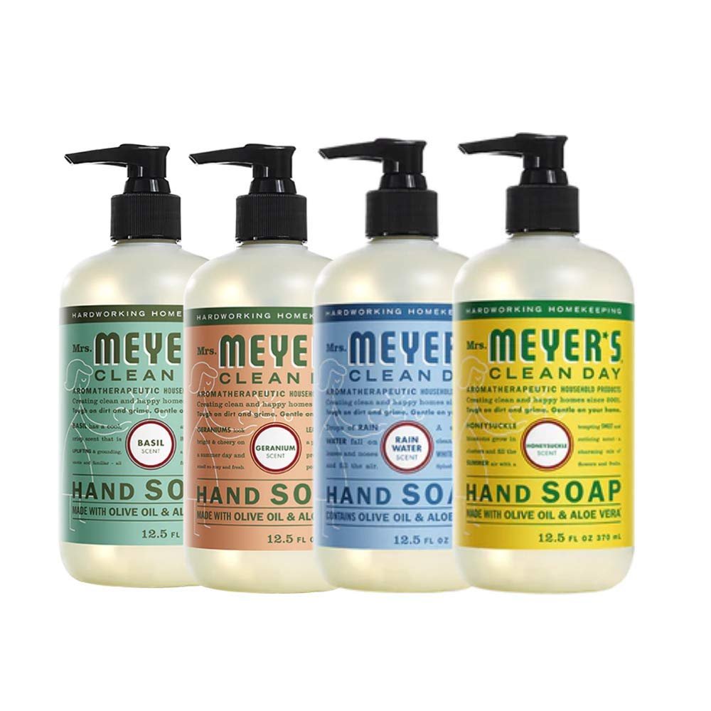 Mrs. Meyers Clean Day Liquid Hand Soap, 1 Pack Basil, 1 Pack Geranium, 1 Pack Rain water, 1 Pack Honey Suckle, 12.50 OZ each