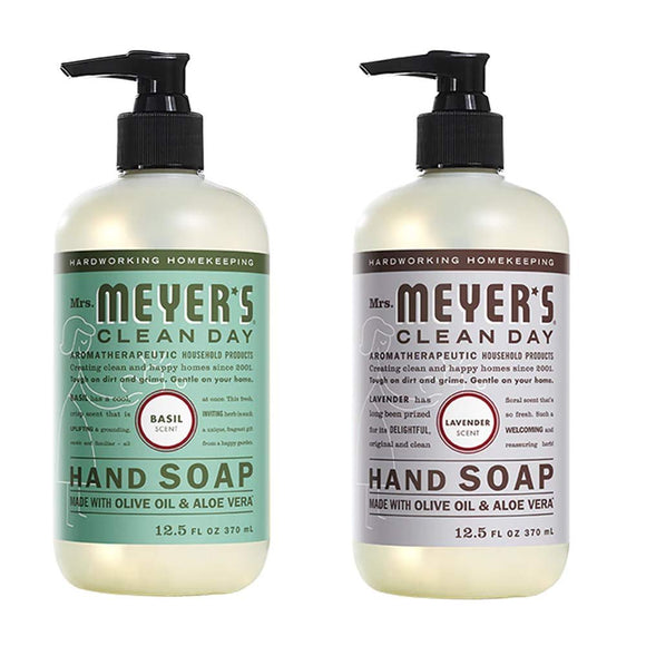Mrs. Meyers Clean Day Liquid Hand Soap, 1 Pack Basil, 1 Pack Lavendar, 12.5 OZ each