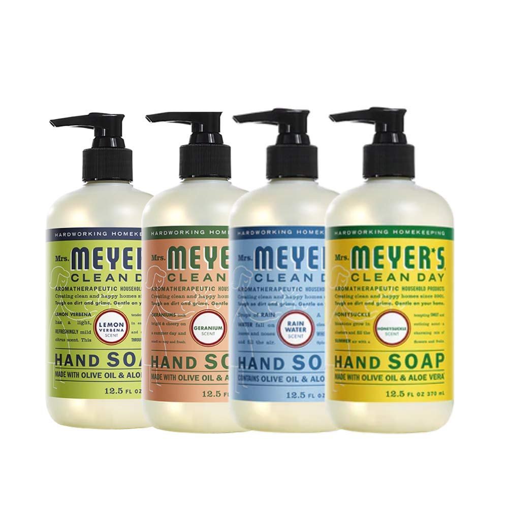 Mrs. Meyers Clean Day Liquid Hand Soap, 1 Pack Lemon Verbena, 1 Pack Geranium, 1 Pack Rain water, 1 Pack Honey Suckle, 12.50 OZ each