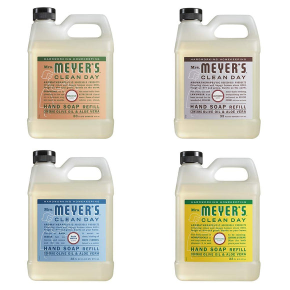 Mrs. Meyers Clean Day Liquid Hand Soap Refill, 1 Pack Geranium, 1 Pack Lavender, 1 Pack Rain Water, 1 Pack Honey Suckle, 33 OZ each