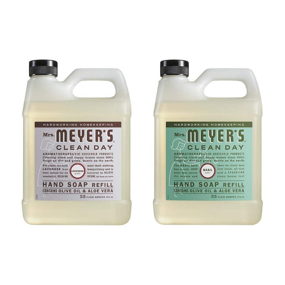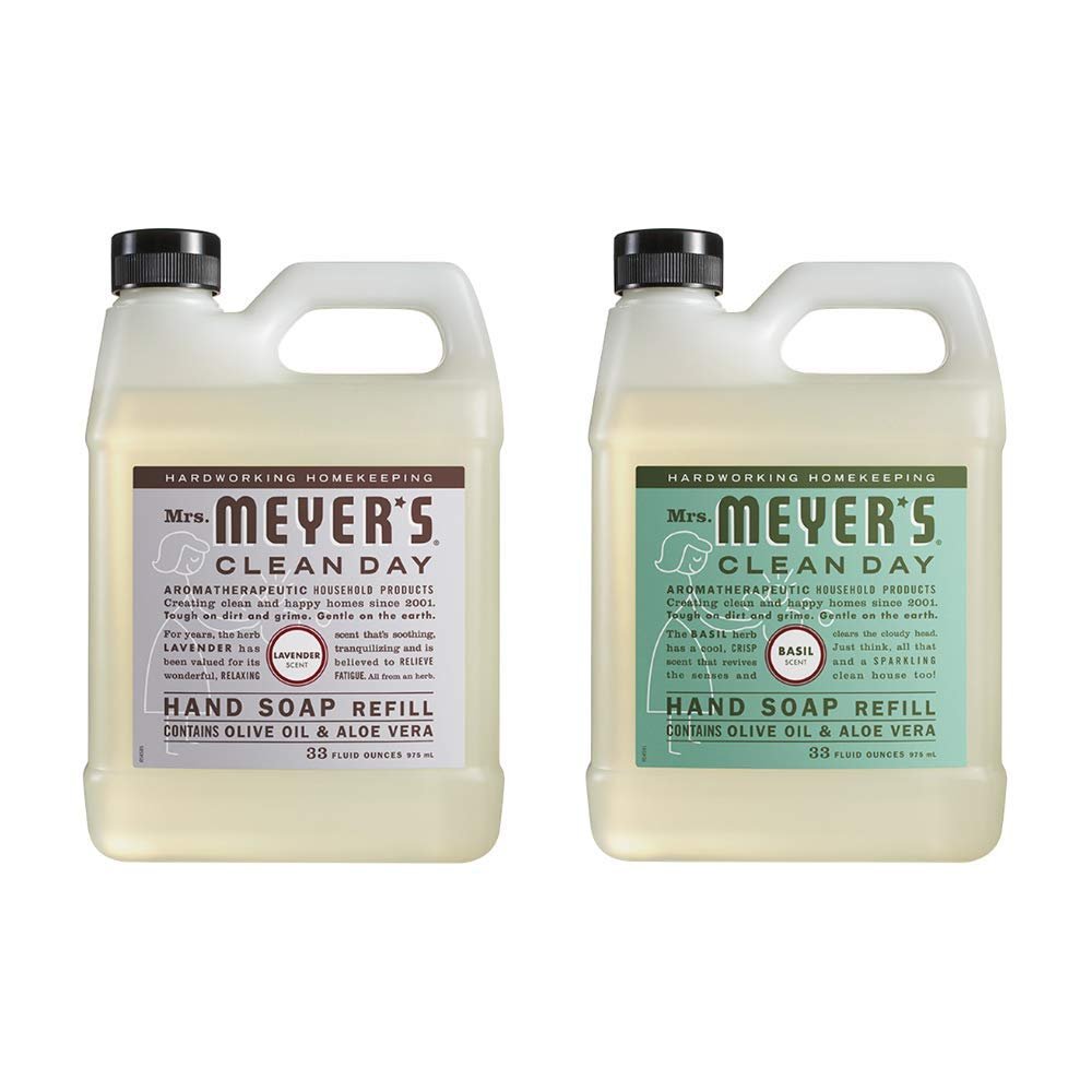 Mrs. Meyers Clean Day Liquid Hand Soap Refill, 1 Pack Lavender, 1 Pack Basil, 33 OZ each