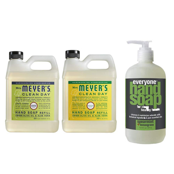 Mrs. Meyers Clean Day Liquid Hand Soap Refill, 1 Pack Lemon Verbena, 1 Pack Honey Suckle, 33 OZ each include 1 12.75 OZ Bottle of Hand Soap Spearmint + Lemongrass