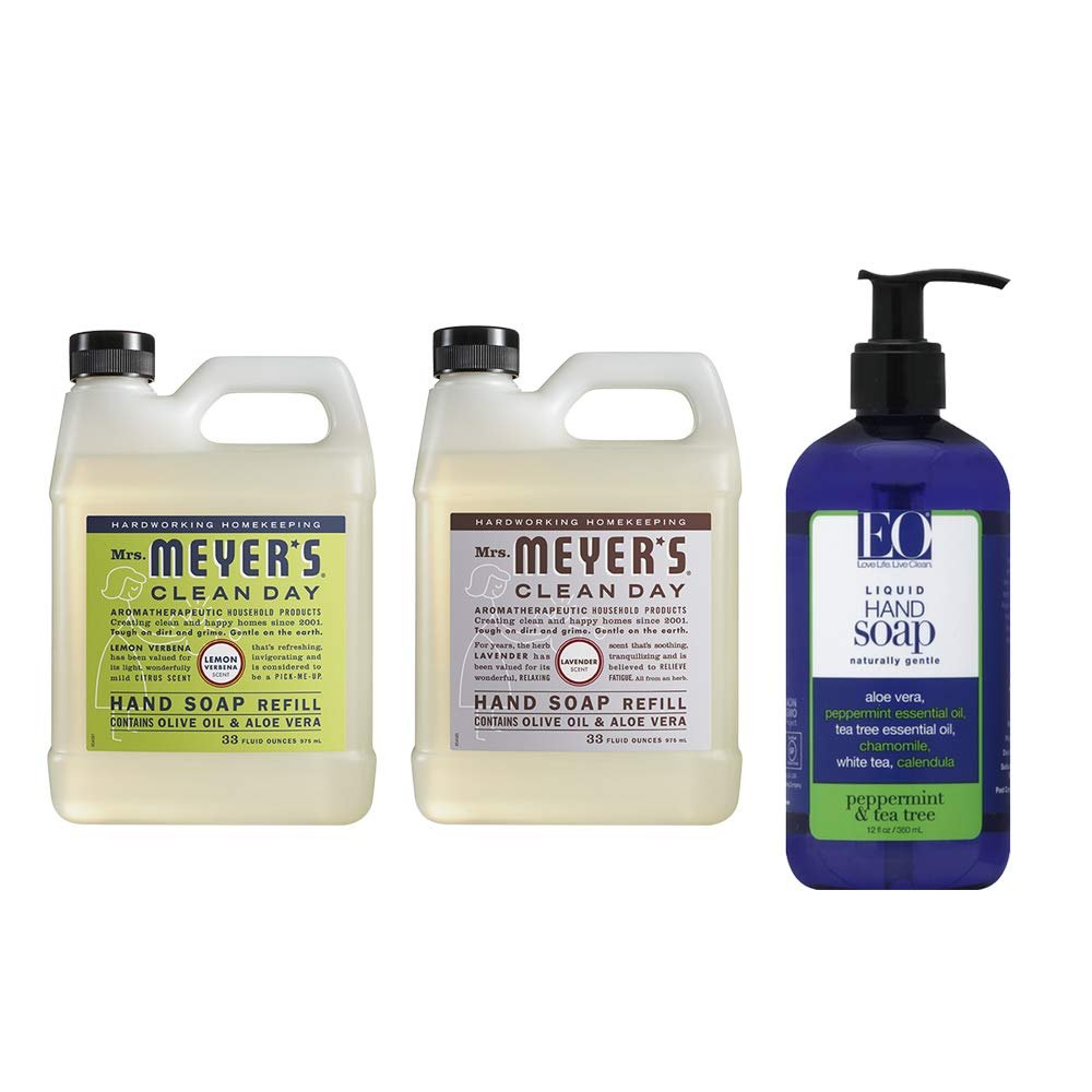 Mrs. Meyers Clean Day Liquid Hand Soap Refill, 1 Pack Lemon Verbena, 1 Pack Lavender, 33 OZ each include 1 12 OZ Bottle of Hand Soap Peppermint & Tea Tree