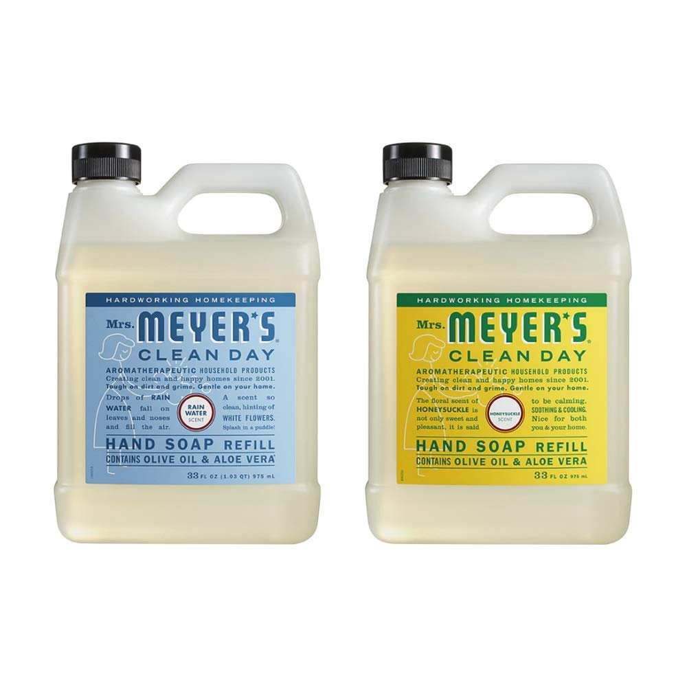 Mrs. Meyers Clean Day Liquid Hand Soap Refill, 1 Pack Rain water, 1 Pack Honey Suckle, 33 OZ each
