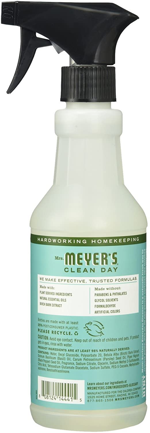 Mrs. Meyer's Clean Day Basil Multi-Surface Everyday Cleaner takes the basic formula of our All Purpose Cleaner and adds a special Vegetable Protein Extract, a naturally fresh way getting rid of kitchen messes and bathroom odors. Combines garden-fresh scent with plant-derived ingredients and essential oils. Great on all non-porous surfaces such as finished wood and tile floors, countertops, walls, porcelain, bathroom fixtures, sealed natural and synthetic stone, and more. Made in the USA.