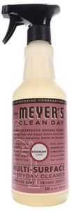 Mrs. Meyer's Clean Day Multi-Surface Everyday Cleaners feature hard-working yet gentle multi purpose cleaning agents, while also providing a special, singular scent for your entire home. Savor the memorable and hearty scents of our Rosemary cleaner with clean, brisk evergreen leaves and blushing mauve flowers. We combine garden inspired scents, essential oils, and plant-derived multi purpose cleaning ingredients to clean kitchen messes and all over the house. Our cleaning spray is great on all non-porous surfaces such as finished wood and tile floors, Countertops, walls, porcelain, bathroom fixtures, sealed natural and synthetic stone, and more. Available in other garden inspired scents and biodegradable products such as dish soaps and laundry detergents! Mrs. Meyer's - rooted in goodness.