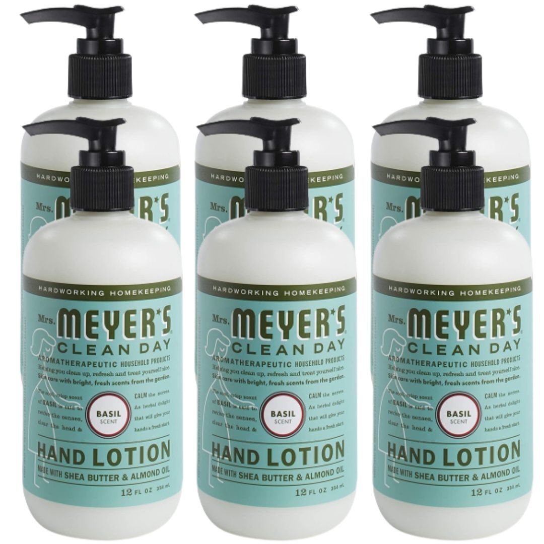 Hydrating Natural Hand and Body Lotion Safe to Use w/ Shea Butter Basil Scented Lotion for Women and Men A Daily Moisturizing Lotion 12 FL Oz Refillable Pump Bottle, 6 Bottles
