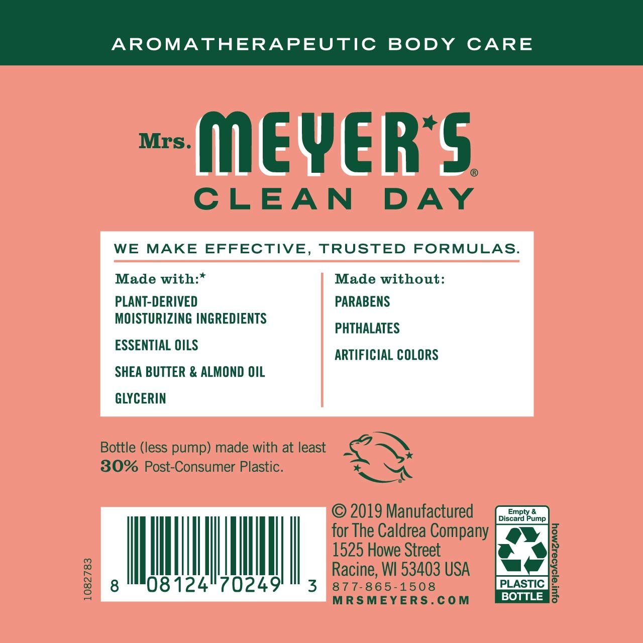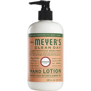 Mrs. Meyer’s Clean Day Geranium Hand Lotion is specifically made to moisturize dry hands without leaving behind a greasy residue, while also providing a special, singular scent for your entire home. The geranium scented hand lotion fills the air with its tempting sweet blossoms – a charming mix of flowers and fruits. So serene and sunny! Apply after using Mrs. Meyers Hand Soap to maintain those soft, hard- working hands. Use as geranium body lotion or apply to your feet and put on your socks for an overnight dry foot remedy. Lotion made with shea butter, almond oil, essential oils, and other thoughtfully chosen ingredients that soften dry hands. Best of all, our garden-fresh hand lotions are made without parabens or formaldehyde and always cruelty free. A Leaping Bunny Certified product. Also available in other garden inspired scents and products such as hand soaps, laundry detergents, candles, and so much more! Mrs. Meyer’s – rooted in goodness.