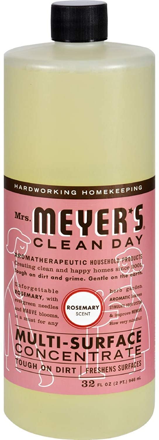 Mrs. Meyer's Clean Day, 32 OZ, Rosemary Scent, Multi-Surface Concentrated Cleaner, Hard Working Generalist For Use On All Non Porous Home Surfaces, Dilatable Product That Can Be Used Everyday Cleaning, Use Throughout Your Home, Floors, Counters, Cupboards and Walls, For Tough Stains, Use Straight Except For Hardwood Floors and Natural Stone and Allow To Sit For A Few Minutes, Then Wipe Up, Makes 16 Gallons.