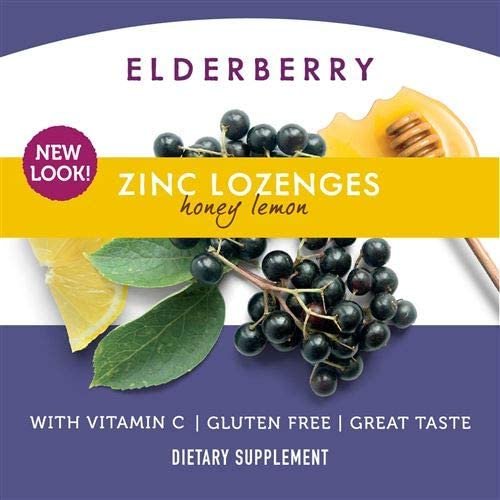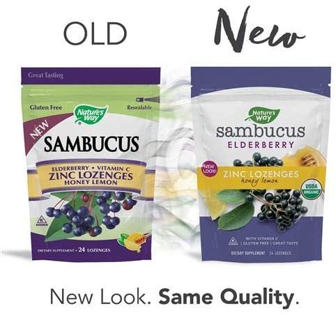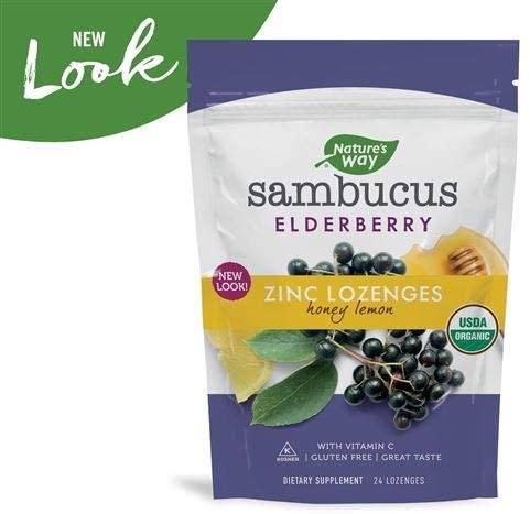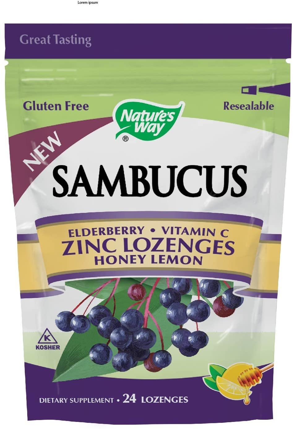 Nature's Way Sambucus Zinc Lozenges with Elderberry and Vitamin C, Honey Lemon Flavor, Gluten Free, Kosher Certified