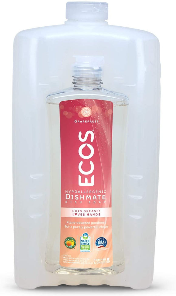 Non Toxic, Hypoallergenic Dishmate, Grapefruit, Ultra-Concentrated, Without Dyes, Parabens, Phosphates, Phthalates, Pack of 2, 80 FL OZ Per Pack