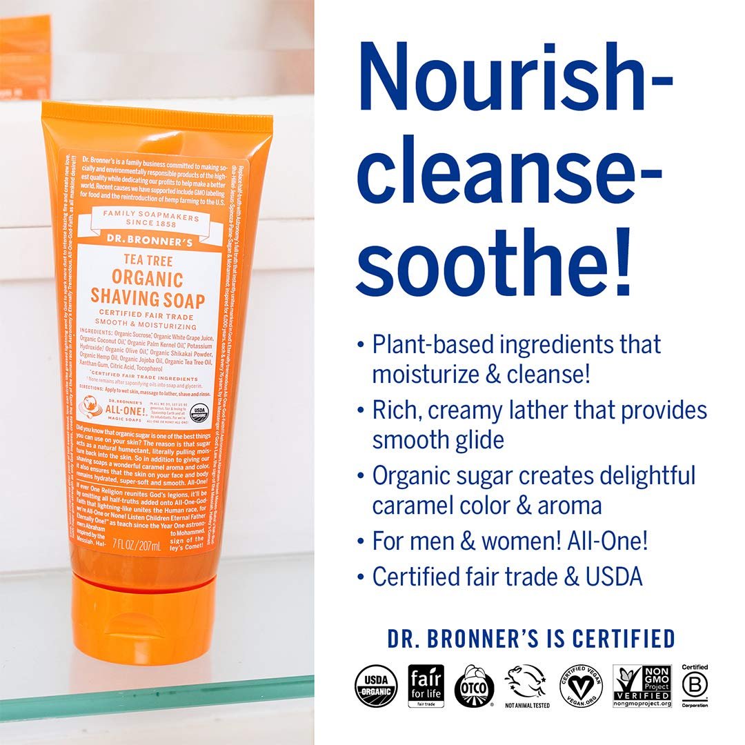 Organic Shaving Soap, Tea Tree, Organic, Sugar and Shikakai Powder, Soothes and Moisturizes for Close Comfortable Shave, Use on Face, Underarms and Legs, Pack of 4, 7 Fl OZ Per Pack