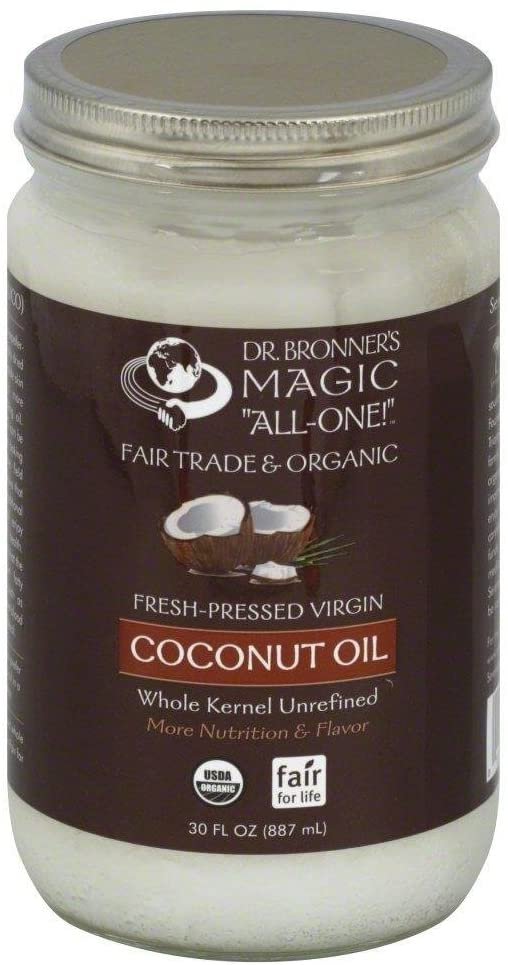 Organic Virgin Coconut Oil (Whole Kernel, 30 Ounce) - Coconut Oil for Cooking, Baking, Hair and Body, Unrefined and Fresh-Pressed, Rich and Nutty Flavor, Fair Trade, Vegan, Non-GMO - Pack of 4