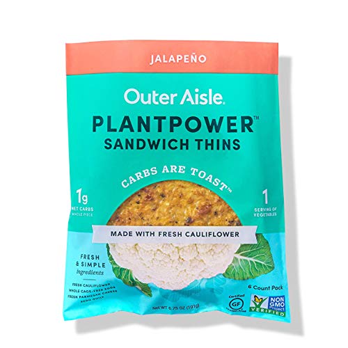 Outer Aisle Gourmet Cauliflower Sandwich Thins ' Keto, Gluten Free, Low Carb & Paleo ' Jalapeno 5-Packs
