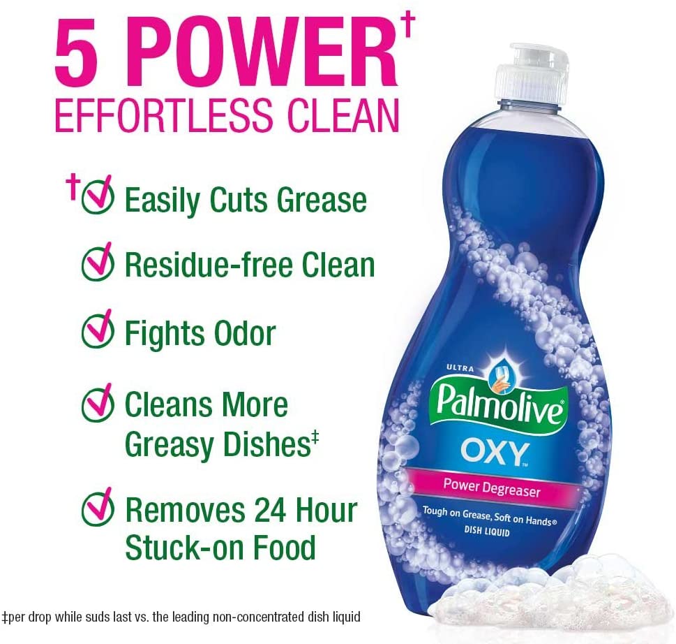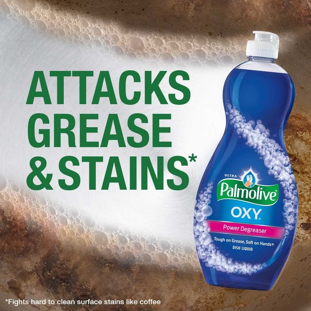 Attack grease & hard to clean surface stains like coffee with Palmolive Ultra Dish Liquid Oxy Power Degreaser. Palmolive Ultra Dish Liquid Oxy Power Degreaser dish liquid combines the grease cutting power of Palmolive with oxygenated cleaning action, creating a powerful grease dissolver that makes the toughest dishes an easy clean.