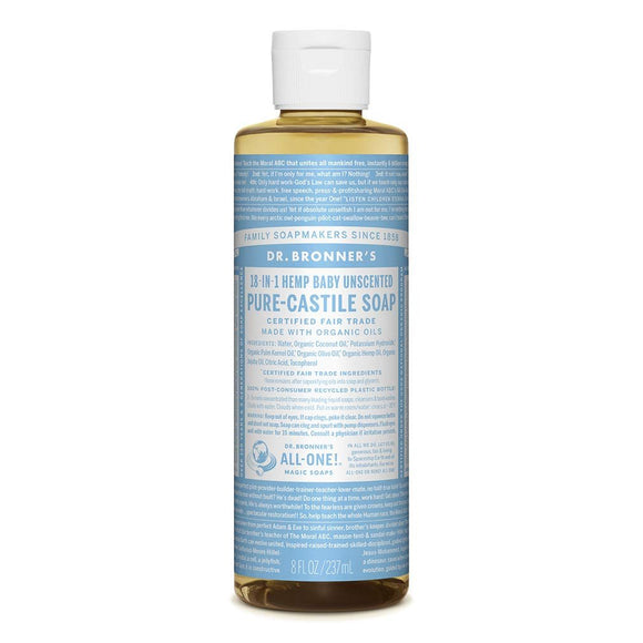 With no added fragrance and double the olive oil, our Baby Unscented Pure-Castile Liquid Soap is good for sensitive skin & babies too (though not tear-free!). Lian Style Corporation soap is concentrated, biodegradable, versatile and effective. With 18-in-1 uses, these soaps are perfect for your face, body, and hair, but can also be used for rinsing food, cleaning dishes, mopping, and doing laundry. With no synthetic preservatives, detergents, or foaming agents, they are even safe enough for your pets! Our Pure-Castile soaps are never tested on animals and completely cruelty-free. Made with organic and certified fair trade ingredients, packaged in a 100% post-consumer recycled bottle. All-One!