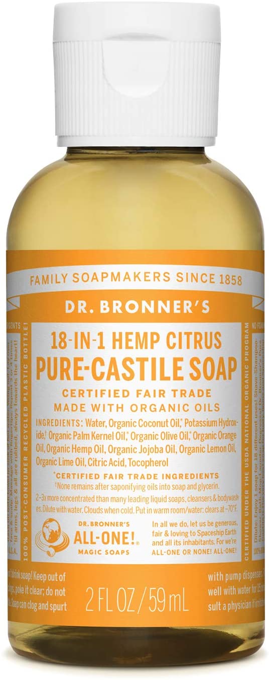 Pure-Castile Liquid Soap (Citrus, 2 ounce) - Made with Organic Oil for Face, Body, Hair, Laundry, Pets and Dishes, Concentrated, Vegan, Non-GMO Pack of 2