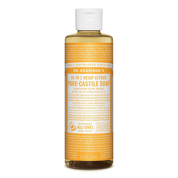 Fresh and bright—with an invigorating blend of organic orange, lemon and lime oils! Our Citrus Pure-Castile Liquid Soap is concentrated, biodegradable, versatile and effective. With 18-in-1 uses, these soaps are perfect for your face, body, and hair, but can also be used for rinsing food, cleaning dishes, mopping, and doing laundry. With no synthetic detergents, or foaming agents, they are even safe enough for your pets! Made with organic and certified fair trade ingredients, packaged in a 100% post-consumer recycled bottle. All-One!