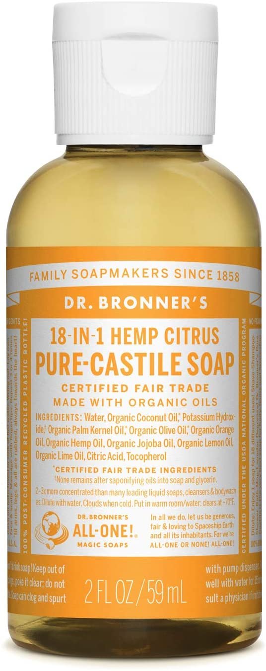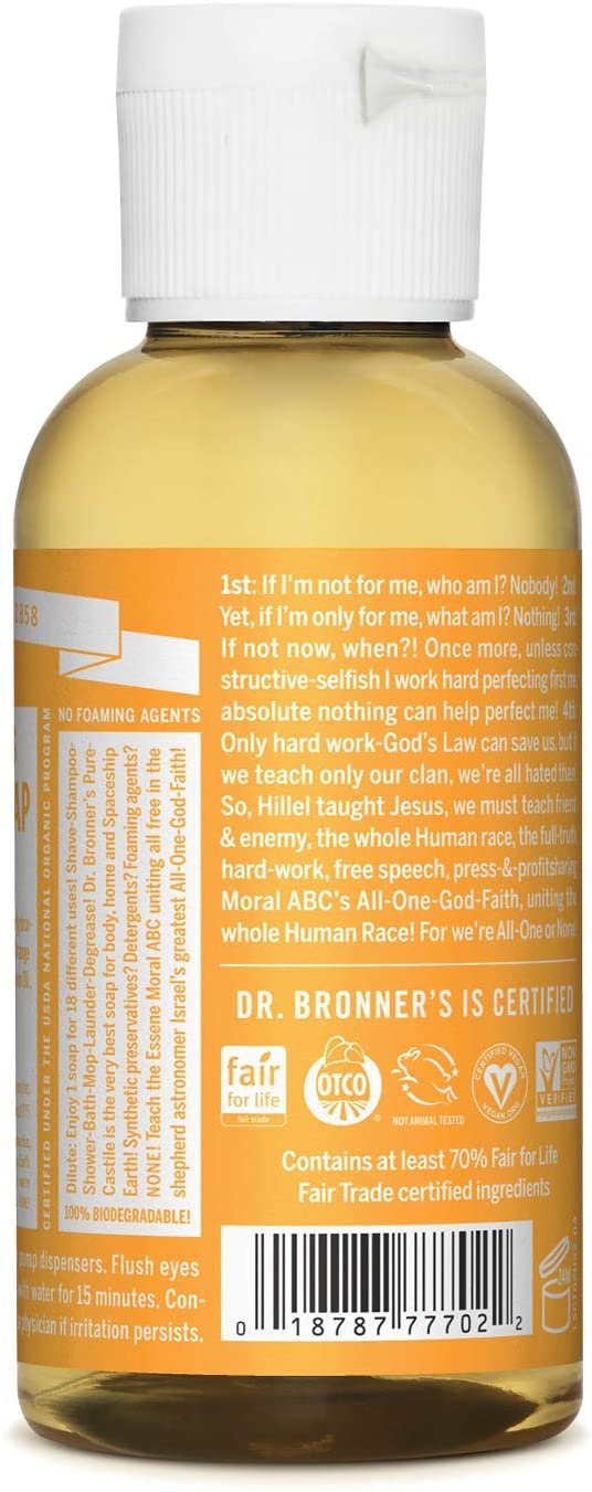 Pure Castile Liquid Soap, Citrus, Made with Organic Oil, For Face, Body, Hair, Laundry, Pets and Dishes, Concentrated, Vegan, Non-GMO, Pack of 1, 2 Fl OZ Per Pack