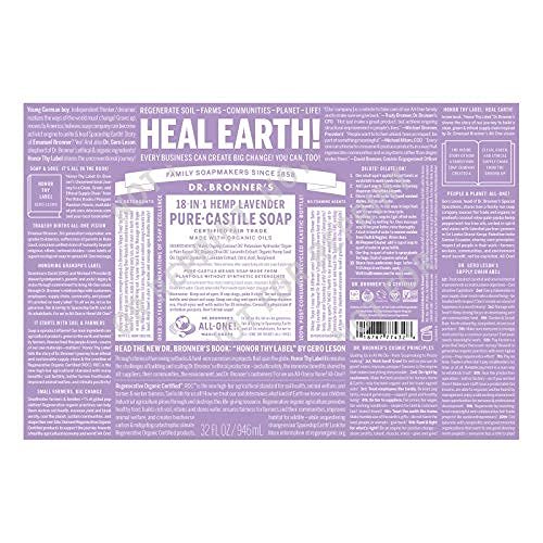 Pure Castile Liquid Soap Concentrate: 18-in-1 Hemp Soap w/ Organic Essential Oil: Olive, Jojoba - All Natural & All Purpose Castile Soap for Skin Care, Hand Wash, Cleaning & More - Lavender 128 Fl Oz