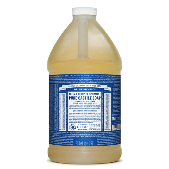 Our most popular scent—with a peppermint burst so pure it tingles! Scented with organic peppermint oil to cool skin, clear sinuses and sharpen the mind. Our Peppermint Pure-Castile Liquid Soap is concentrated, biodegradable, versatile and effective. With 18-in-1 uses, these soaps are perfect for your face, body, and hair, but can also be used for rinsing food, cleaning dishes, mopping, and doing laundry. With no synthetic preservatives, detergents, or foaming agents, they are even safe enough for your pets! Our Pure-Castile soaps are never tested on animals and completely cruelty-free. Made with organic and certified fair trade ingredients, packaged in a 100% post-consumer recycled bottle