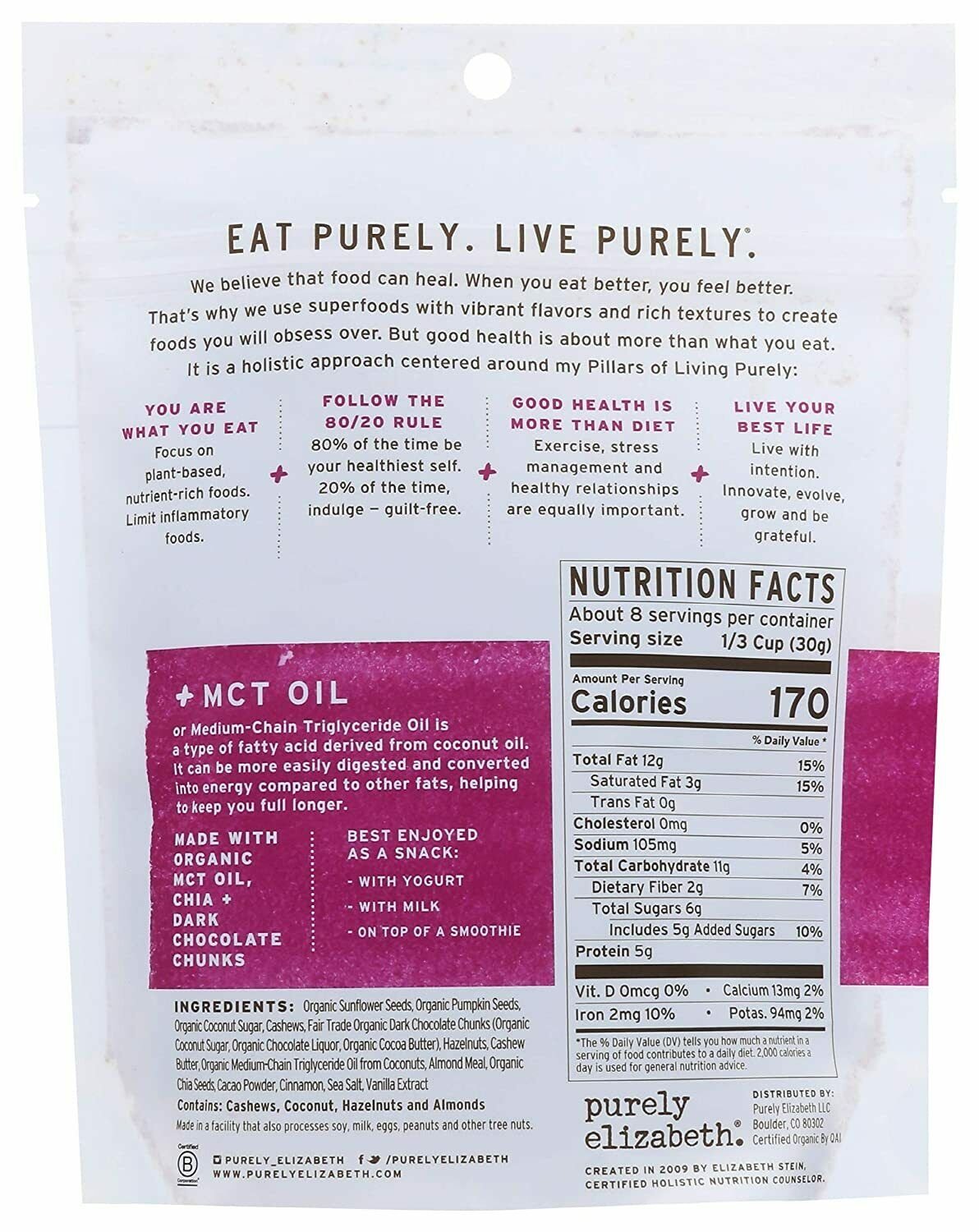Purely Elizabeth, Granola MCT Chocolate Hazelnut, 12 Ounce-2-Packs Breakfast