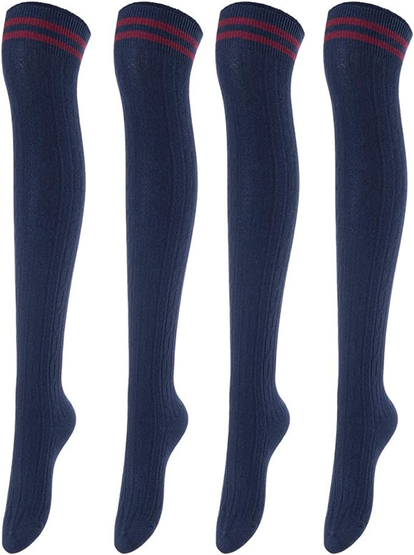 Big Girls' Women's 4 Pairs Over Knee High Thigh High Cotton Socks Leg Warmers J1023 Size L/XL(Navy) 4p1c6