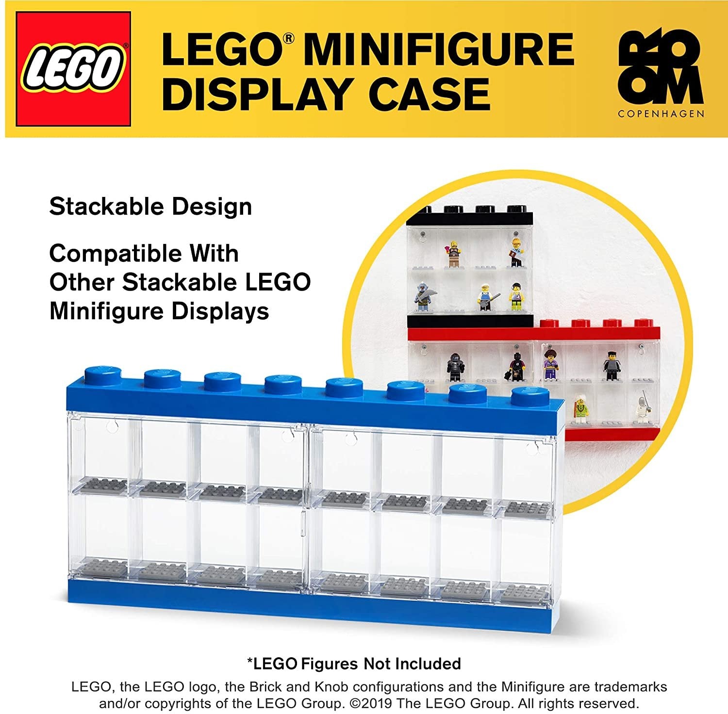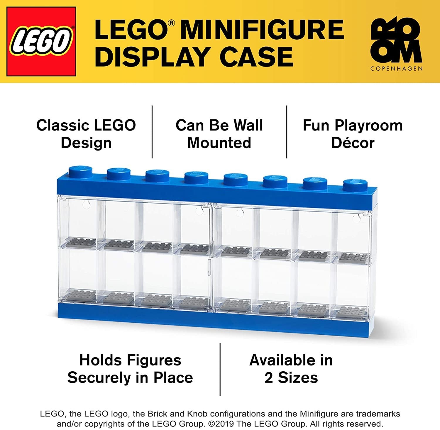 The LEGO Minifigure Display Cases are BPA, phthalate, and PVC free ensuring they're safe for your family. They come in two sizes and are available in four colors for lots of customizable and creative display options. Minifigures sold separately. DISPLAY YOUR FAVORITE FIGURES: The Minifigure Display Case is a great way to showcase your most prized figures and characters in your home STACKABLE DESIGN: Just like classic LEGO bricks, the display cases are stackable so you can create a wall of friendly faces in your playroom SAFE and SECURE: This display case keeps your minifigures stowed away safely; they snap into the bottom baseplate and are organized by dividers SHOW THEM ANYWHERE: The back of the display case features 2 holes for mounting, allowing you to hang your minifigures anywhere in your household PRODUCT SPECIFICATIONS: Minifigure Display Cases are BPA, phthalate, and PVC free, intended for ages 5 years and older, minifigures sold separately
