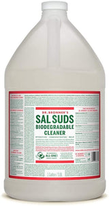 Sal Suds Liquid Cleaner is a concentrated hard-surface all-purpose cleaner perfect for tough jobs. Made with plant-based surfactants, scented with pure fir and spruce essential oils—no cheap, harsh pine stump oil! without any synthetic dyes, fragrances or preservatives. Perfect for general household cleaning (dishes, floors, laundry, etc.), it cleans and rinses with exceptional power, yet it is mild and gentle on the skin. Sal Suds Liquid Cleaner is equally effective in hard or soft water, rinsing freely, hot or cold. Dilute for DIY cleaning recipes! 100% cruelty-free, as certified by the Coalition for Consumer Information on Cosmetics—will biodegrade rapidly after doing its job. All-One!