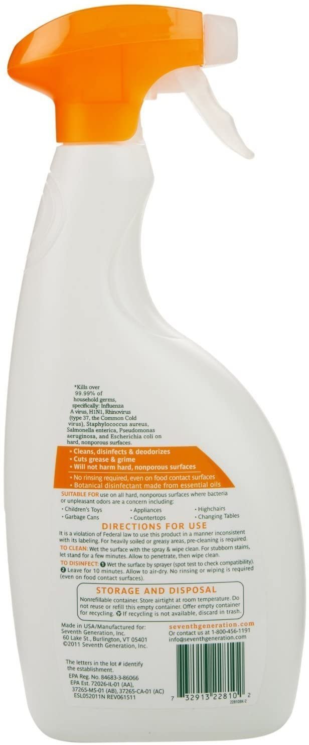 Seventh Generation 22810CT Botanical Disinfecting Multi-Surface Cleaner 26 oz Spray Bottle 8/Carton