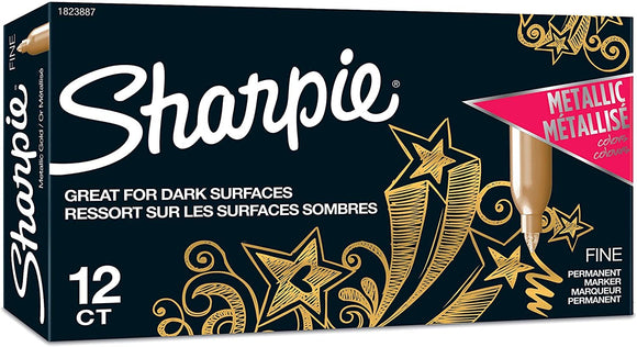 Sharpie Metallic Permanent Markers, Fine Point, Gold, 12 Count
