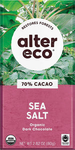 Single Chocolate Bars Pure Dark Cocoa, Fair Trade, Organic, Non-GMO, Gluten Free (Sea Salt)-2-Packs