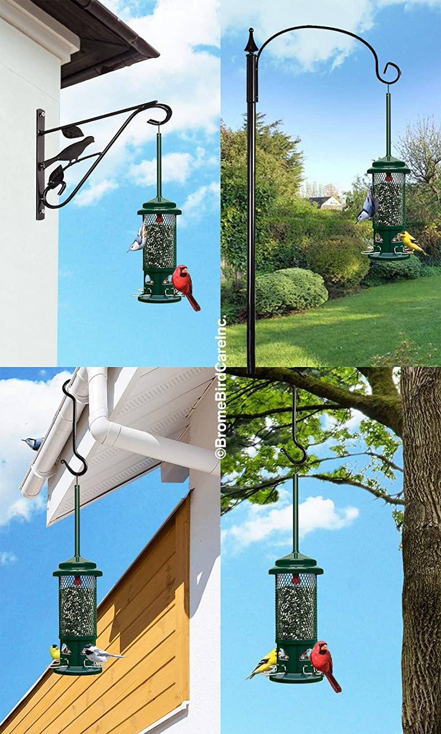 Place your feeder just about anywhere--no more worrying about those pesky squirrels. Position the feeder by your deck, in a nearby tree, or over a favorite window for those great close-up views. The bird feeder hangs easily with the use of wall brackets, branch hooks, or extension hooks.