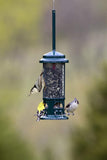 A welcome choice for bird lovers, the squirrel-proof bird feeder attracts a wide variety of clinging and perching birds including American Gold Finches, Chickadees, Hairy Woodpeckers, Cardinals, Indigo Buntings, Rose-Breasted Grosbeaks, White-Breasted Nuthatches, and Purple Finches.