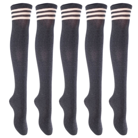 Superior Big Girls Women's 5 Pairs Thigh High Cotton Boot Socks. Fancy Design, Top Quality & Splendid Colors Size 6-9 (Dark Grey) T1022-5p1c2