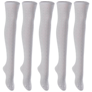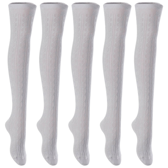 Superior Big Girls Women's 5 Pairs Thigh High Cotton Boot Socks. Fancy Design, Top Quality & Splendid Colors Size 6-9 (Light Grey) T1024