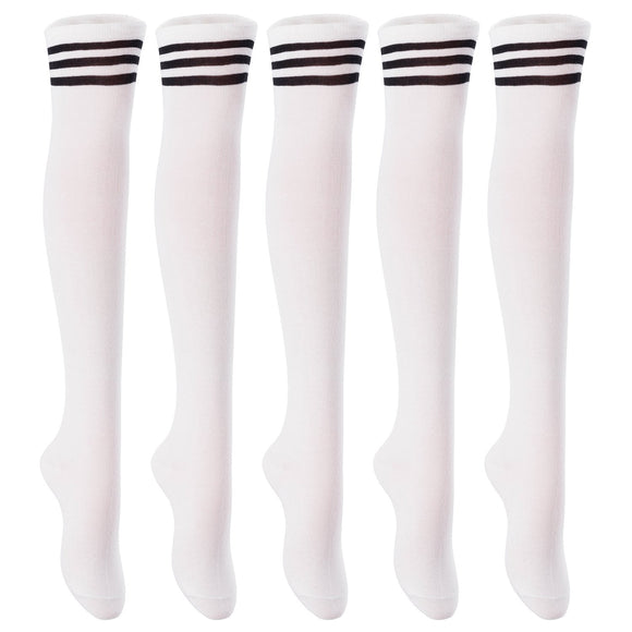 Superior Big Girls Women's 5 Pairs Thigh High Cotton Boot Socks. Fancy Design, Top Quality & Splendid Colors Size 6-9 (White) T1022-5p1c5