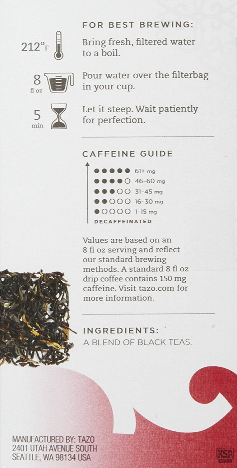 Tazo Awake Black Tea, 20-Count Tea Bags (Pack of 6)