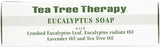 Tea Tree Therapy Eucalyptus Soap Vegetable Base. Description: with Crushed Eucalyptus Leaf, Eucalyptus Radiata Oil, Lavender Oil, and Tea Tree Oil The Banalasta Oil Plantation is located in New South Wales, Australia. It is the world's largest Eucalyptus radiate plantation and uses organic farming practices. Eucalyptus radiate is a softer more pleasant antiseptic and anti-microbial eucalyptus. Eucalyptus radiate is the species of choice for aroma therapists as the medicinal eucalyptus most suitable for use on the skin. Tea Tree Therapy Natural Eucalyptus Soap is vegetable based and is infused with Eucalyptus radiate Oil, Lavender Oil and Tea Tree Oil to give it anti-microbial action with aromatic deep cleansing freshness and softness. Crushed Eucalyptus leaf gently exfoliates the skin and macadamia nut oil soothes and moisturizes the skin. It is an all over body bar suitable for daily use on all skin types. Disclaimer These statements have not been evaluated by the FDA. These products are not intended to diagnose, treat, cure, or prevent any disease.