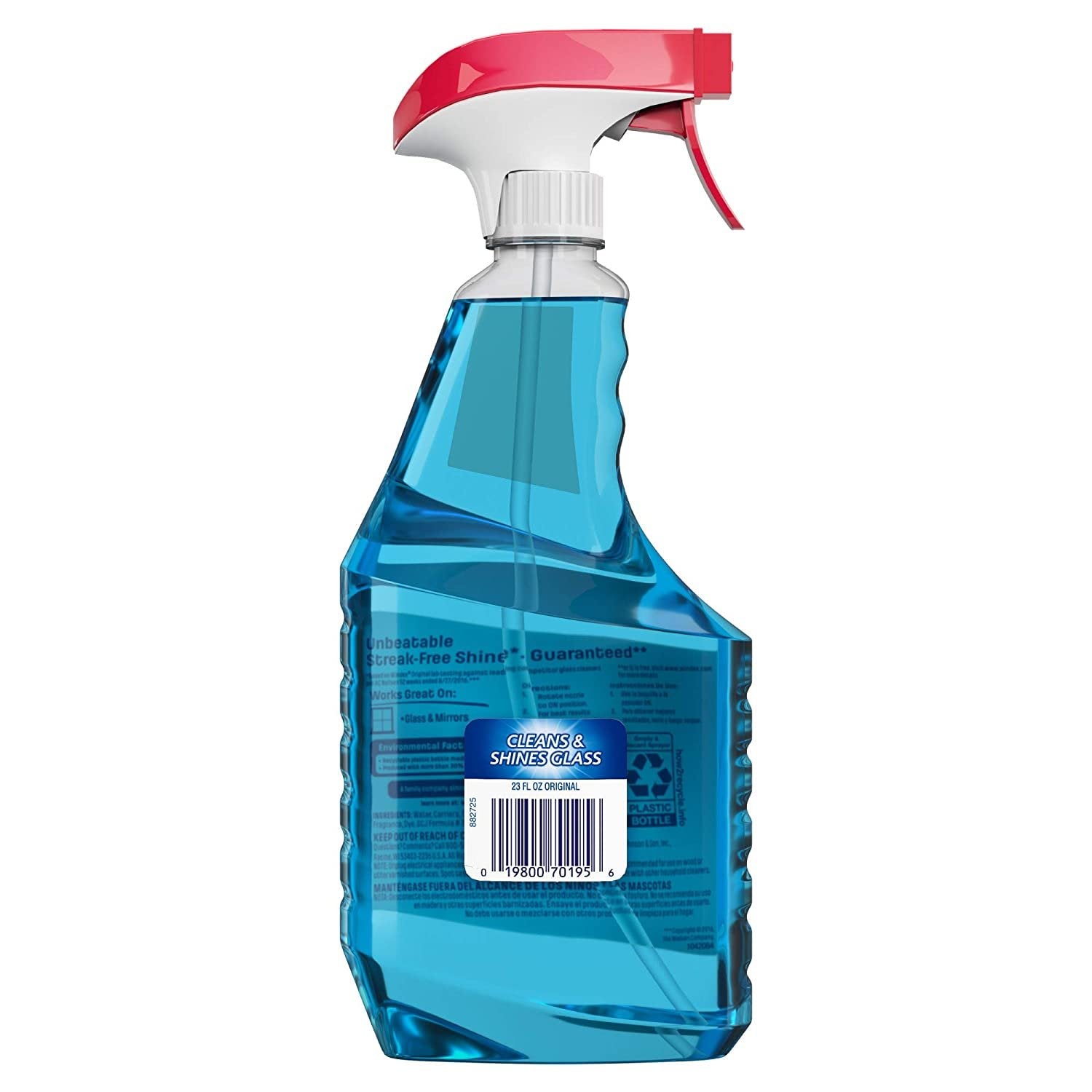 Windex Glass cleaner, original, 32 oz, trigger spray bottle container, liquid form, Blue, floral odor, 10.7 pH, applicable materials: chrome, stainless steel, Plexiglas, mirrors, ceramic tile, enamel, plastic and other hard surfaces, 0.2% VOC
