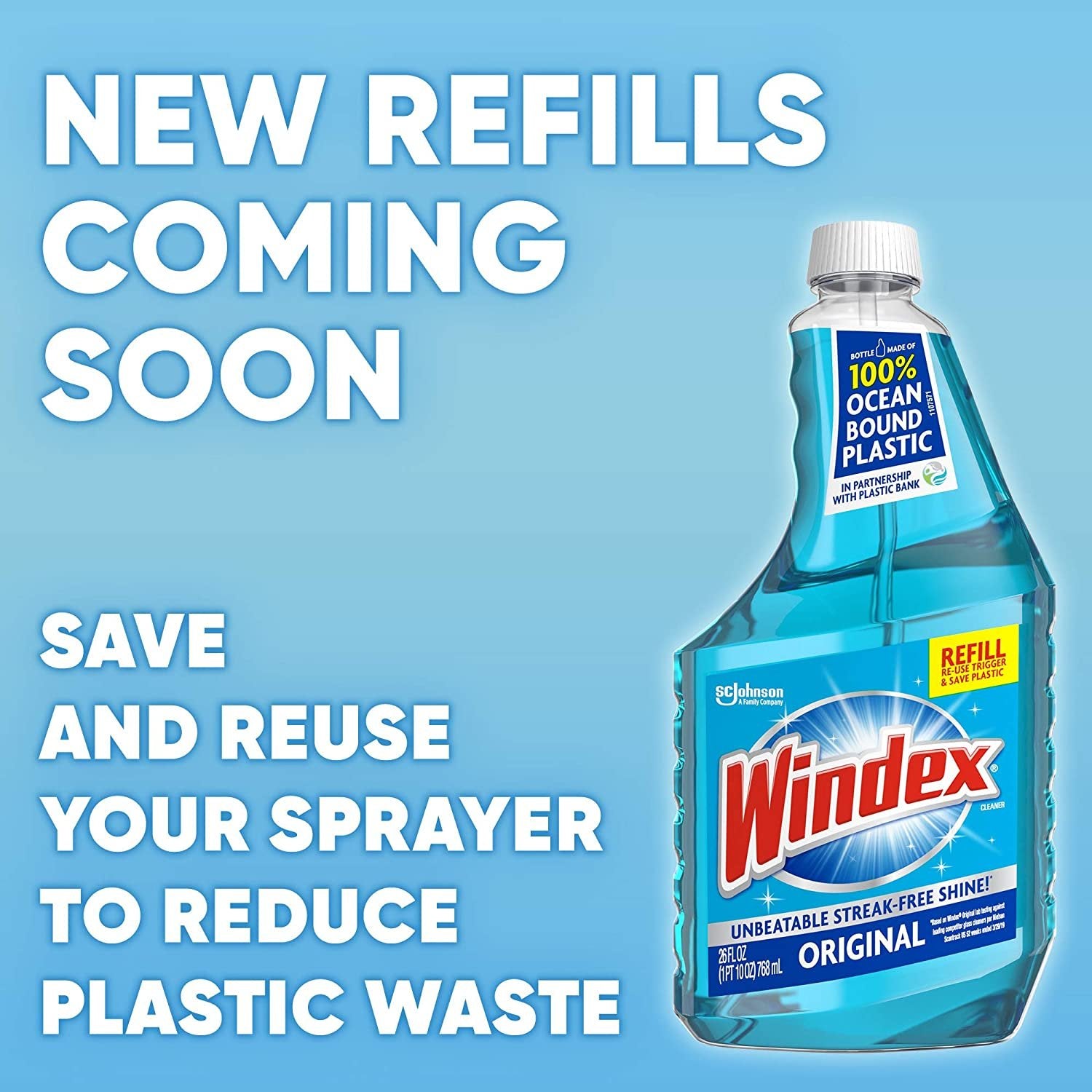 Windex Glass and Window Cleaner Refill Bottle, Bottle Made from 100% Recycled Plastic