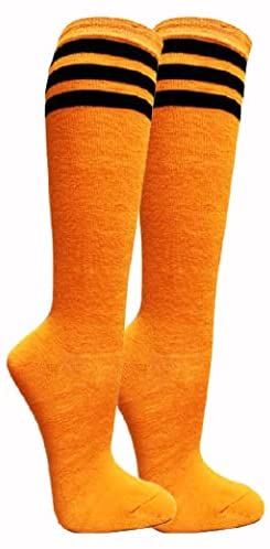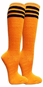 Women's 1 Pairs Truly Beautiful Comfortable Durable Soft Cable-Knit Knee High Socks Triple Stripes SR459-1P One Size (Orange, Black)